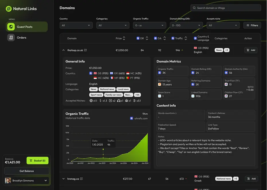 “We use it mainly for guest posts at scale. Filtering and selection are faster than our usual manual process, and the site-level info is enough to make a decision without opening ten tabs. Order status is clear, so we spend less time chasing updates. Overall it’s a practical workflow improvement.”